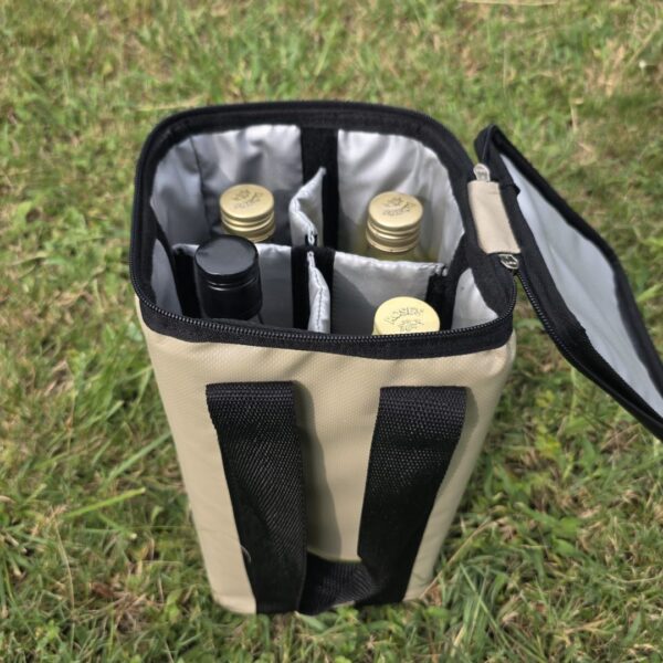 It comfortably holds 4 bottles of wine, spirits, or cold drinks. This cooler does more than keep beverages cold; it protects your bottles during transit by preventing clanking, knocking, and accidental breakage. Travel gravel roads or load up for a busy weekend without worrying about chipped glass or wasted drinks.