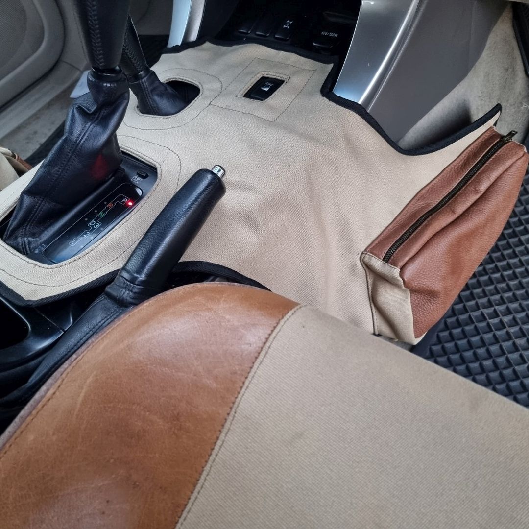 Transform your vehicle’s interior with the Exclusive Range, combining 100% cotton canvas with premium whiskey leather accents. This luxurious option adds a touch of sophistication, as beautifully showcased in the product photographs. Designed for those who appreciate elegance and superior craftsmanship, the Exclusive Range turns your transmission area into a statement of refined style.