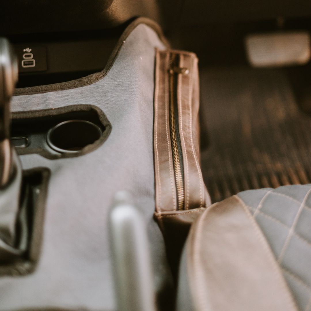 Custom-Made Gear Covers with practical storage pockets are designed to enhance your driving experience, especially on long journeys. These versatile covers not only improve your vehicle’s interior but also provide essential extra storage for those travel necessities. Our Gear Covers are the ultimate travel companion, helping you stay organized and ready for the road ahead. Beyond functionality, they offer effective protection for your transmission area, shielding it from scratches, scuffs, and bumps, keeping your vehicle in pristine condition.