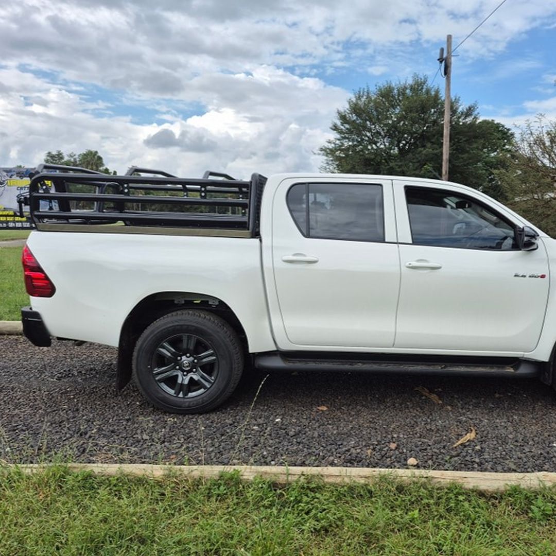 We manufacture and supply Toyota Hilux Cattle Rails according to the specs of the vehicle and specific brand requirements to ensure the stability of the structure of the vehicle. Our products are fabricated from A-grade steel round tubes and specific brackets and fixing plates as required by vehicle manufacturers. We use gate locks on the sides and the rails include a rear window protector. The rear gate includes a V-gate and is detachable. Our Cattle Rails are made up of 50x2mm, 38x2mm round tube, powder coated black with standard 3 x side rails, including 4x tie down mounting brackets.