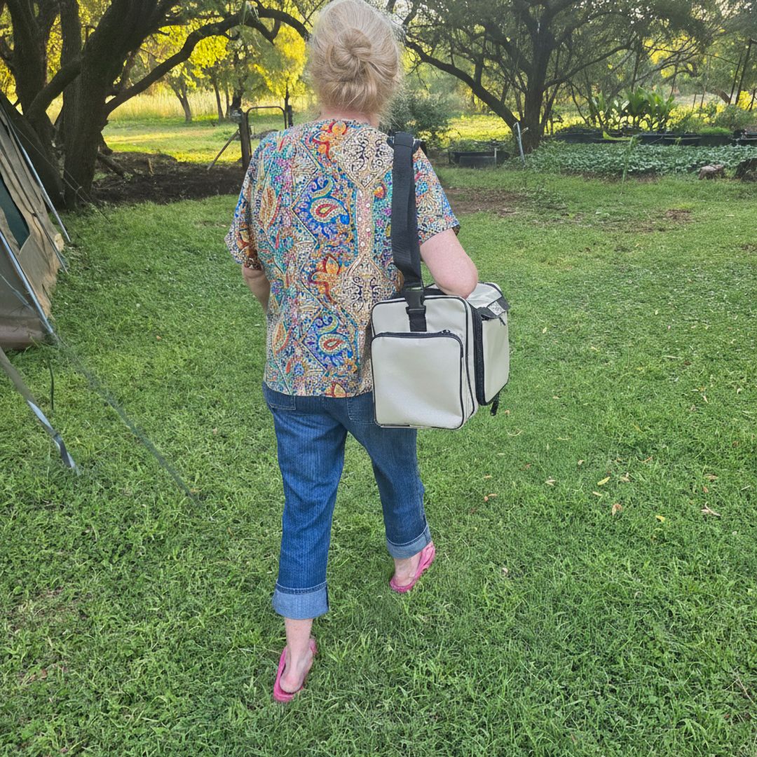 An adjustable shoulder strap offers hands-free convenience and shortens into a carry handle when preferred.